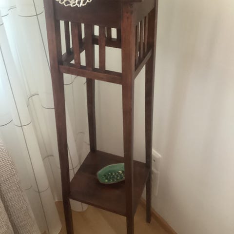 Myydään vapaaopistolla käsityönä tehty kukkateline. Korkeus noin 90 cm, kannen ja pohjan sivun pituus noin 19 cm.