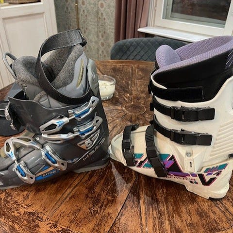 Ulkoisesti toimivat koon 40-41 naisten/nuorten monot. Mutta sisäkangas on jotenkin nihkeä ja tahmainen. Yritin kahdesti pestä pesuaineella ja rätillä, mutta en saanut nihkeyttä pois. Annetaan uuteen kotiin, jos joku yrittää saada näistä vielä toimivat monot.