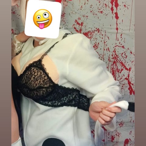Naamias-/penkkariasu. Mahtuu hyvin esim. ulkovaatteet puvun alle rekkaan. Kengurutasku myös erinomainen karkeille. Kysy lisää!