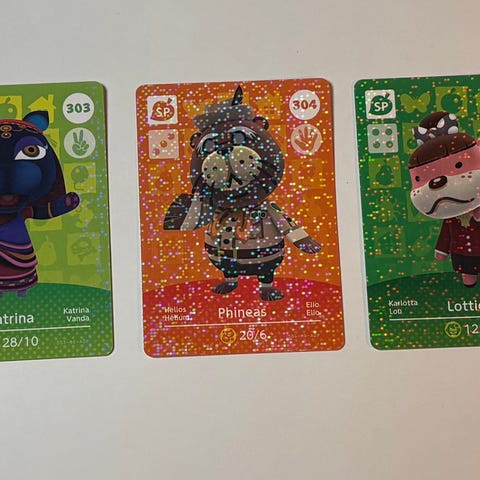 Nintendo Animal Crossing amiibo -kortit 3kpl Katrina, Phineas, Lottie