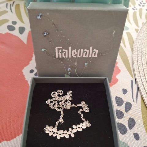 Kuvan mukainen, suunniittelija Tiina Arkon, Kalevala haave hopeinen kaulakoru jousirengaslukolla.