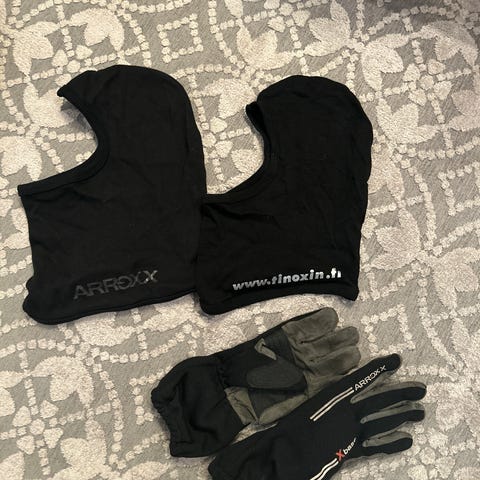 Myös ajohanskat ja kypärähuppu/ kypärämyssy lasten kokoluokkaa myynnissä. Koirakoti.