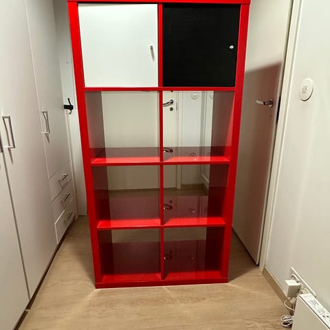 Ikea kallax hyvässä kunnossa. Takana hieman naarmuja, piilossa kun käytössä joko pystyssä tai kuten tv tasossa.