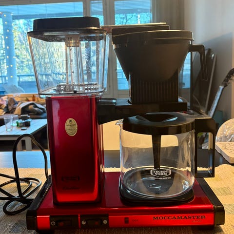 FI • Pinkki Moccamaster kahvinkeitin, erinomaista kuntoa. Ostettu maaliskuussa 2022 KahviKaverista hintaan 229 €. Myyn nyt 90 €:lla, paperisuodattimet mukana. Myyn sen, koska haluan kokeilla manuaalista kahvin valmistusta. Nouto Kulosaaresta.