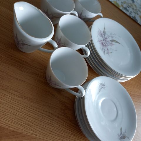Kuusi paria Bavaria kahvikuppeja ja leipälautasia ,täysin ehjät hyvin vähän käytetty. Saksalaista posliinia