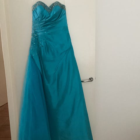 vihreä sametin kaltainen ilta- tai juhlapuku, koko One size. Puvussa on vyötäröllä solmittava vyö. Erittäin pitkä ja helppo tarvittaessa lyhentää. Sopii erilaisiin juhla- ja iltatilaisuuksiin ja vanhojen tansseihin. Tilattu juhliin jotka peruuntuivat, mutta tuotelappu ehditty leikata joten merkistä ja materiaalista ei varmuutta. Täysin käyttämätön. Tilattu Stockan verkkomyynnistä.