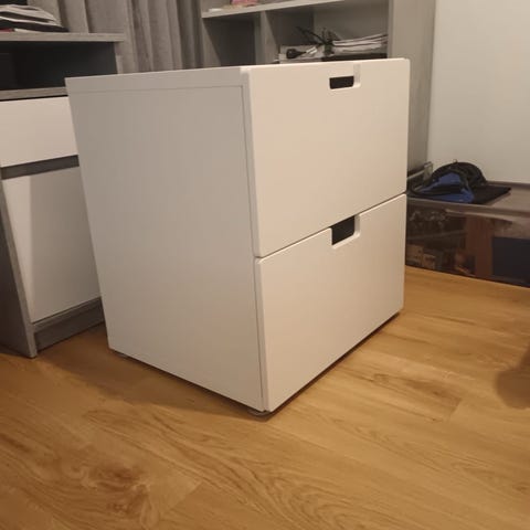 Valkoinen lipasto kahdella laatikolla