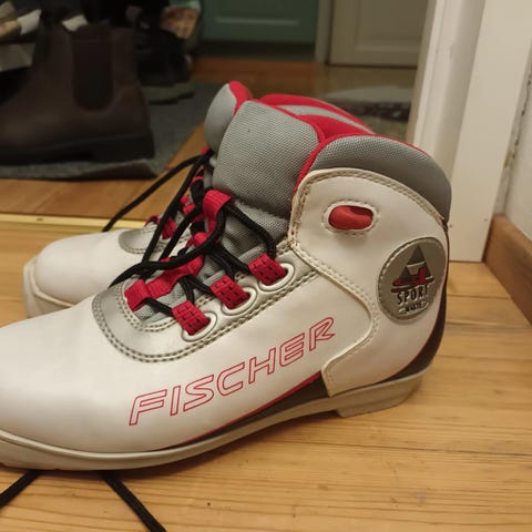 Fischer monot eripari koko 34 ja 35. Meidän työllä meni yhden hiihtokauden ilman ongelmia.