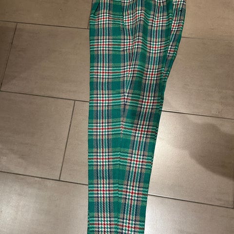 Kotimaisen Dixi-Coatin tekemät lämpimät housut buklee kangasta, vuori alas asti. 65 % villaa, sivutaskut, vyölenkit, laadukkaasti tehdyt kuten silloin vielä tehtiin. ”Pilkullisuus” tulee hieman voimakkaammin esiin kuvissa, luonnossa buklee on vähän harmaampaa.