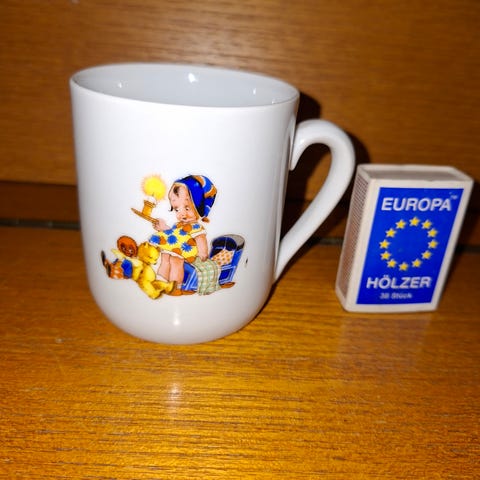 Arabia lasten muki Lysti, joissa on kaksi kahvaa helpottamaan pitoa.