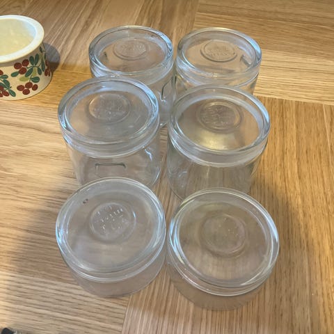 Iittala Rex lasipurkit ja kannet.