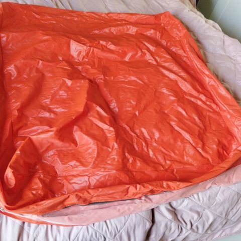 Pyhiinvaellukselle ostettu, kerran sisällä päälle testattu. Eli uusi ja käyttämätön. Laajennus rinkalle/ repulle. Pakkautuu omaan rintataskuun. Paino 450g. Oranssi.