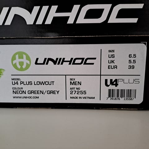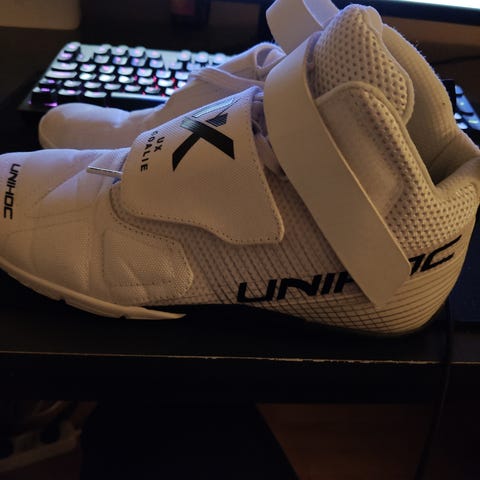 Unihoc U4Force salibandykengät mustalla värillä. Kengät on suunniteltu salibandymaalivahdin pelaamiseen, ja ne tarjoavat tukea ja kestävyyttä lajin vaatimuksiin.