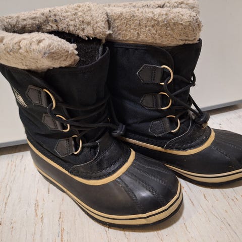 Hyväkuntoiset käytössä olleet vedenpitävät Sorel talvikengät koko 35(22cm) mustat. Irrotettava sisäsaapas(huopikas).