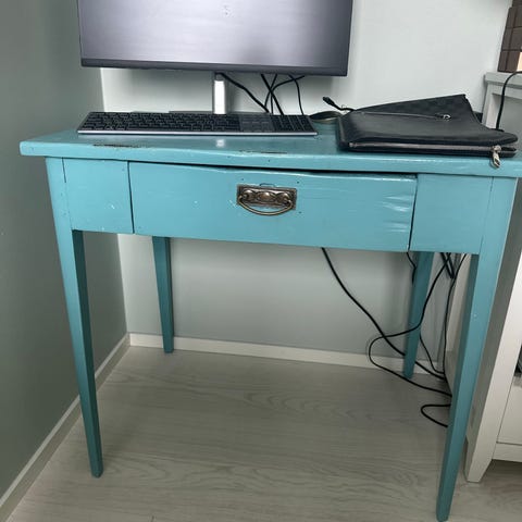 Myydään 1950-luvulta peräisin oleva työpöytä, jossa rulo-ovinen kaappi vetolaatikkoineen. Kunto kohtalainen/toimiva, joskin kulunut ja mahdollisesti kunnostettava.