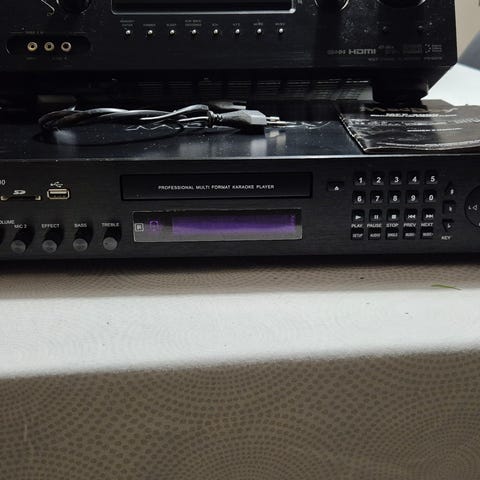 Toimiva MadBoy boomer multi-format karaoke järjestelmä. 2 Tube-002 mikrofoni setti. Liitäntä johto, jonka voi yhdistää TV:hen. Useita karaoke DVD. Tukeva "nahka" päällysteen säilytysboxi, siis. useita DVD-R.