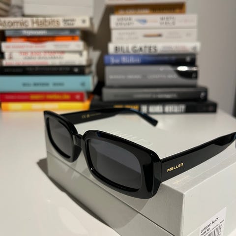 Meller Nandi naisten aurinkolasit, mustat kehykset ja tummat linssit. Mukaan kotelo.