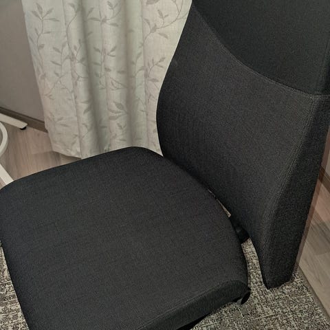 Lasten ergonominen työtuoli, jossa on vihreä pehmustettu istuin ja selkänoja. Tuolissa on säädettävä istuinkorkeus ja tukeva runko. Soveltuu lapsille ja nuorille työ- tai opiskelukäyttöön.