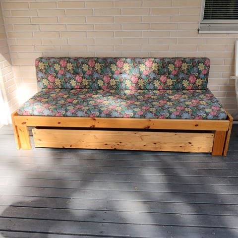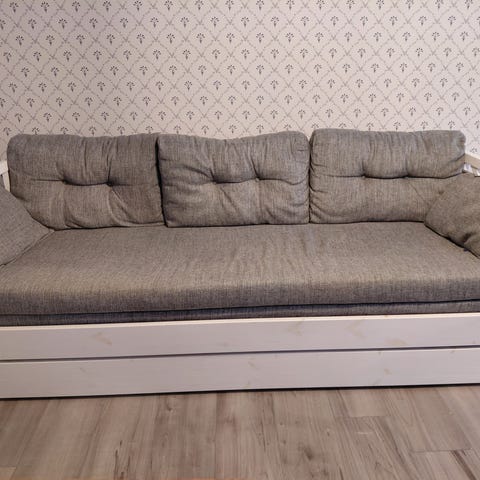 Myydään jämäkkää tekoa oleva vuodesohva eli muistuttaa enemmän kirkonpenkkiä, kuin sohvaa.🪑