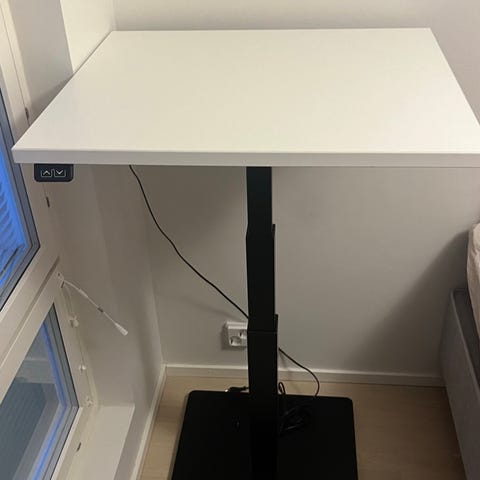 Ollut vähällä käytöllä, joten kunto on todella hyvä. Pöytälevyn mitta 60x 60 ja jalka 50x 50.