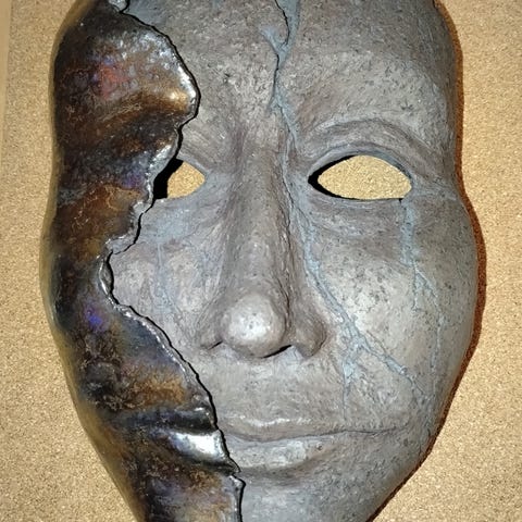 Keraaminen naamio. Satyyri. Koko 22 × 19 × 8 cm.