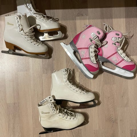 Lasten luistimet, koko 32. Värit valkoinen ja pinkki. Nouto Jätkäsaaresta.