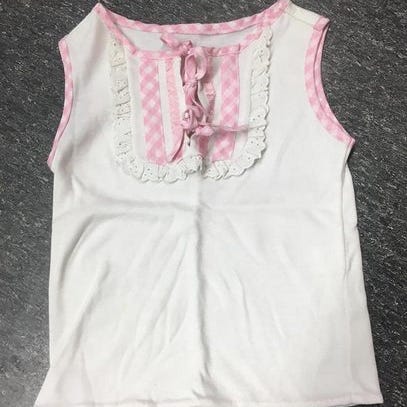 Hyväkuntoinen lasten valkoinen toppi vaaleanpunaisilla ruseteilla. Koko: 1-2 vuotiaalle.
