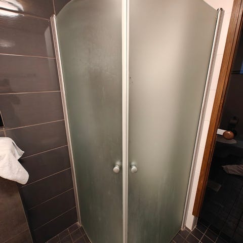 Annetaan kaareva suihkuseinä 80 cm leveä, lista saa mukaan jos tahtoo mutta tapit ovat katkenneet eli eivät ole mukana paketissa.