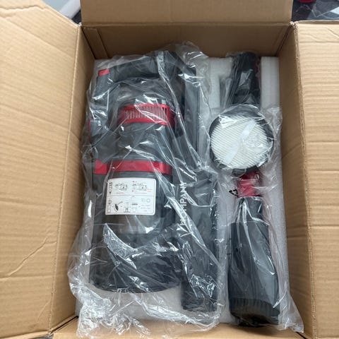 Mukaan kaikki mitä laatikossa oli imurin lisäksi eli seinäteline ohuempi imupää sekä laturi.