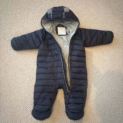 Ollut kahdella vauvalla lyhyen ajan vaunuhaalarina. Kaksi vetoketjua, joten helppo pukea ja riisua.