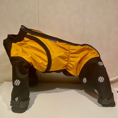 Kaksi kertaa käytetty Janutex lämpöhaalari ”pallo” villakoiralle koossa 30 (naaras).