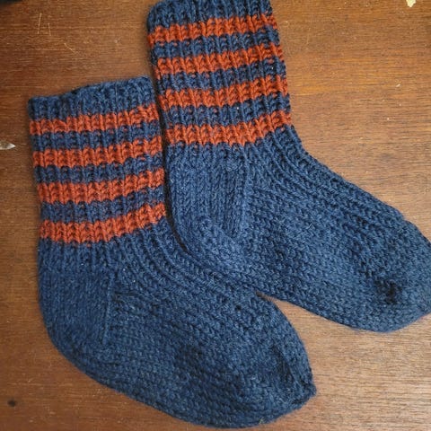 Tummansiniset käsinkudotut lapaset, luultavasti käyttämättömät, todella siistit, jääneet pieneksi, kämmenen pituus noin 14 cm.