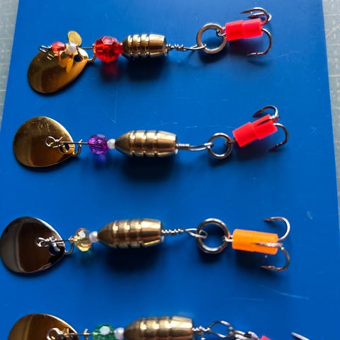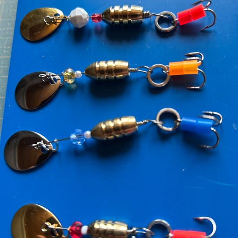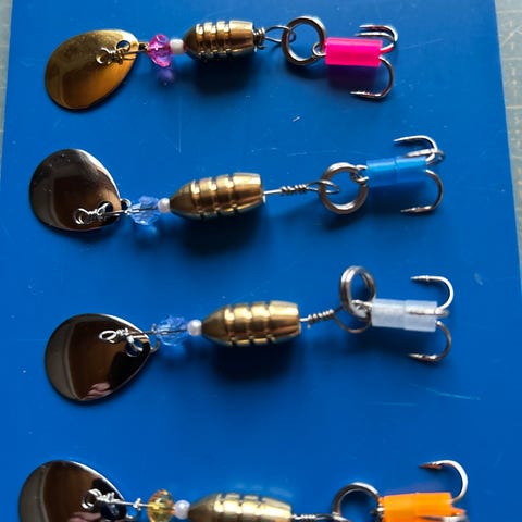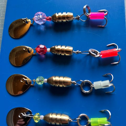 Itsetehtyjä lippauistimia neljän setti 10€. Lipan paino noin 5g.