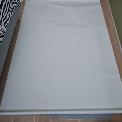 Kankaassa on pieni kosmeettinen jälki keskellä (näkyy yhdessä kuvassa, näkyy erityisesti valoa vasten), ei vaikuta käyttöön.