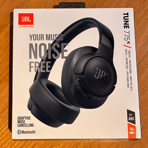 JBL Tune 775 NClangattomat kuulokkeet, joissa on aktiivinen melunvaimennus (ANC) ja Bluetooth-yhteys.