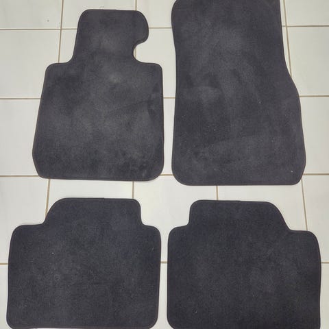 BMW F31 kumimatot, jotka sisältävät etu- ja takaparin. Mustat matot on valmistettu kestävästä kumista ja niissä on uritettu pinta lian ja kosteuden keräämiseen. Matot on muotoiltu BMW-mallin lattiaan sopiviksi.