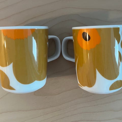 Marimekko oiva ruutu unikko mukit. 4kpl. 20e kpl.