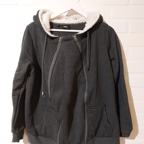 Ihanan pehmeä ja lämmin huppari. Toimii erinomaisena lämmikkeenä raskausmahan ja/tai kantoliinan tai kantorepun kanssa.