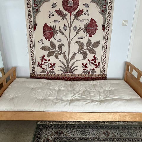 Myydään erittäin hyväkuntoinen Futonian matkafuton / vieraspatja. Nukuttu ehkä viisi yötä ja joka kerta lakanan kanssa. On siis kuin uusi.
