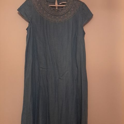 Uudenveroinen ESPRIT mekko,koko 38. Mekko on valmistettu 100% viskoosista ja siinä on pitkä hiha sekä vyötäröllä solmittava vyö. Mekossa on kauluspaita-tyylinen yläosa ja siihen kuuluu väriin sopiva alushame.
