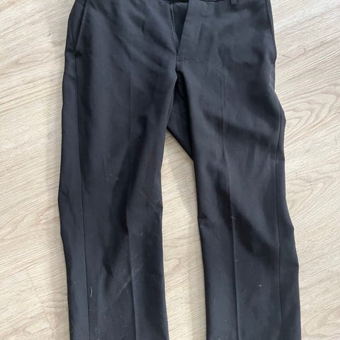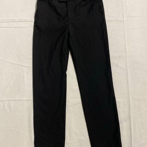 Mustat suorat housut /puvun housut koossa 128 cm. Kangas on laadukasta polyester-viskoosisekoitetta (30/70%), joka hengittää paremmin kuin pelkkä polyesteri. Uutta vastaavat, sillä olleet päällä vain yhdessä juhlassa.