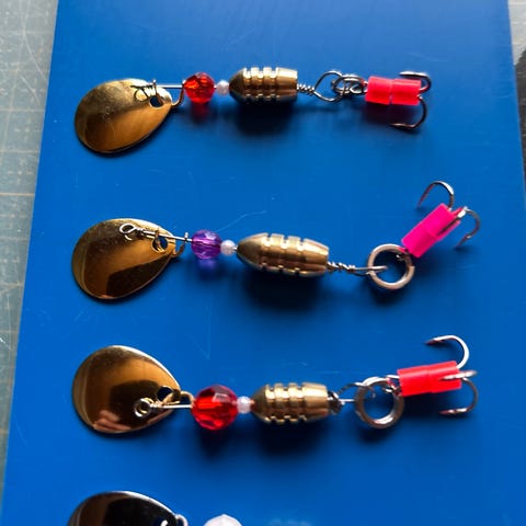Itsetehtyjä lippauistimia neljän setti 10€. Lipan paino noin 5g.