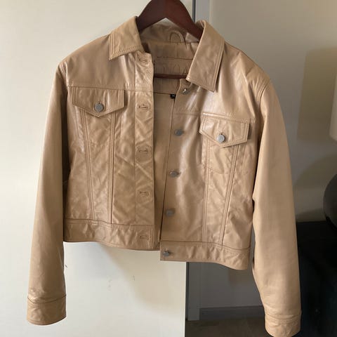 Hyväkuntoinen pehmeä nahkatakki, väri beige, kaunis vuorikangas, kuin uusi.