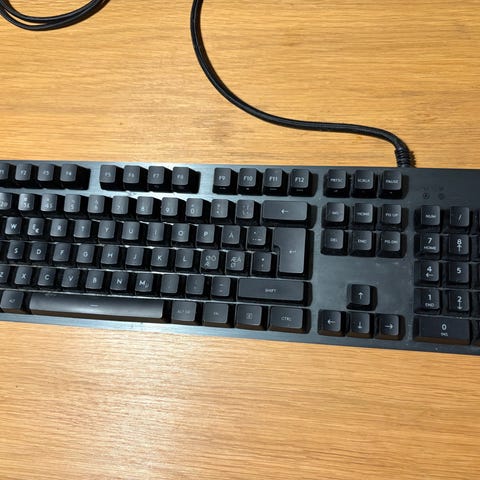 Hyväkuntoinen Logitechin G110 pelinäppäimistö. Taustavalaistut näppäimet, ohjelmoitavat G-näppäimet, mediakontrollit, USB, kuuloke ja mikrofonin liittimet.