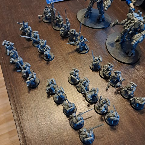 Kaikki figut koottuja ja maalaamattomia. Figut 1st born Marineja. Sisältää: 5 Wolf Guard Terminators ja 10 Blood Claws/Grey Hunters.
