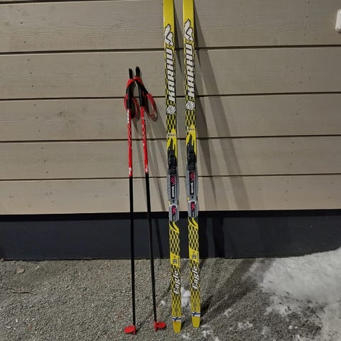 Sukset 160cm ja sauvat 130cm