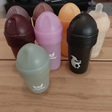 Myydään uusia, käyttämättömiä tuttipulloja. 2 kpl 140ml harmaan värisiä herobility tuttipulloja. Toinen näistä kertaalleen pesty ja steriloitu. 2kpl Ainu 240ml tuttipulloja, toinen pupu kuvalla ja toinen muumi teemalla. 1kpl twistshake 260ml. Tämä kertaalleen myös pesty ja steriloitu. Twistshake tuttipullo ominaisuuden lisäksi maitojauheen annostelija sekä ritilä, joka sekoittaa jauheen tasaisesti nesteeseen.