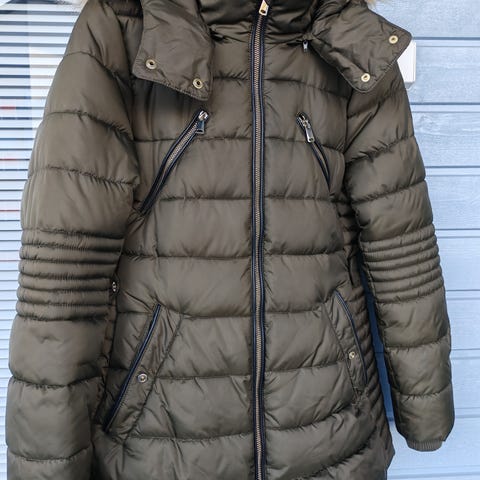 Kauniin tummanvihreän sävyinen (sävy näkyy parhaiten viimeisessä kuvassa) naisten talvitakki, Alexandra-merkkinen. Koko n. L, kokomerkintää en löytänyt. Kainalo-kainalo n. 53cm. Irrotettavat vyö ja huppu.