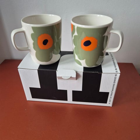 Marimekko oiva juhla unikko 60v. Vihreä pohjainen . Tarralla 25e