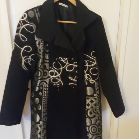 Naisten villakangastakki,aitoa villaa. Italiassa valmistettu, laadukas vuorellinen takki. Siistikuntoinen ja ehjä. Koko 42. Väri lähinnä vaaleanruskea. Noin polvipituinen. Nouto Seinäjoki, Nurmo.